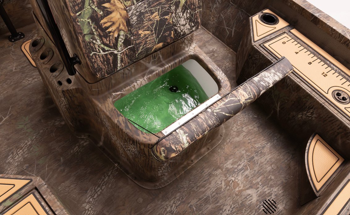 This console livewell is 16" x 21", 15 gallons, and gives the bow angler easy access to keep fish fresh. |