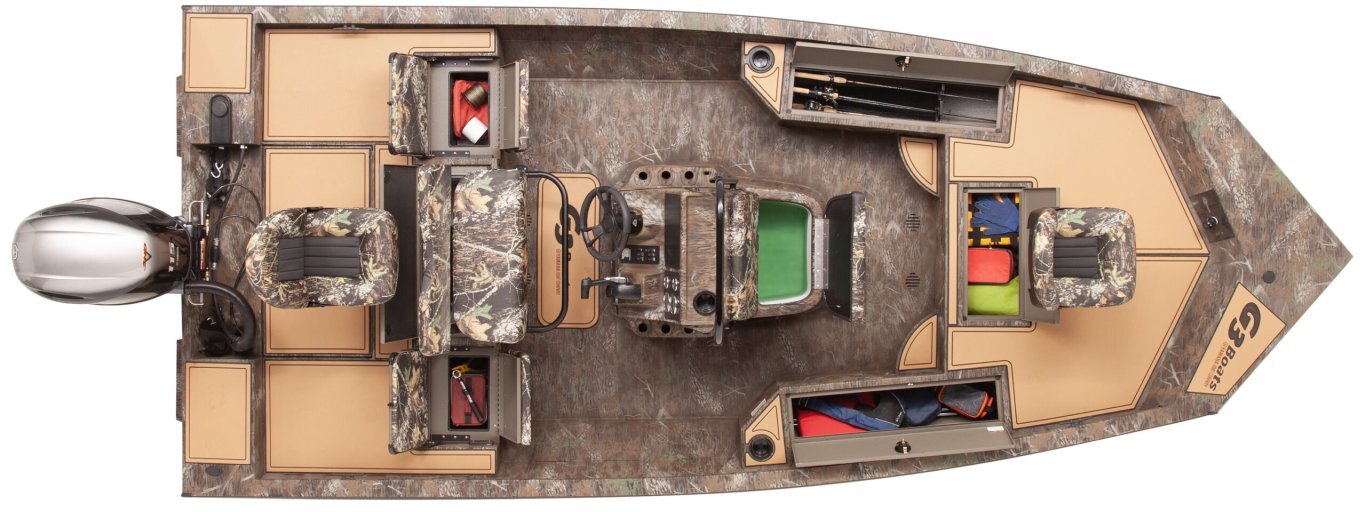 G3 is the leader in tunnel hull designs for shallow water sportsmen. Buoyancy pods aid shallow water hole shot. Optional jack plate available. |