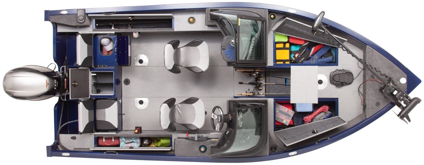 The Captain's command center features Yamaha gauges including tach, trim, speedo, fuel and volt. Humminbird® electronics can be added as optional equipment. Center rod locker is a great addition to these boats. |