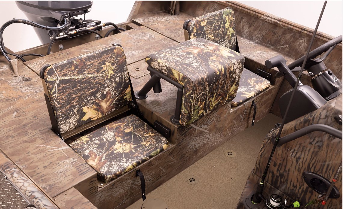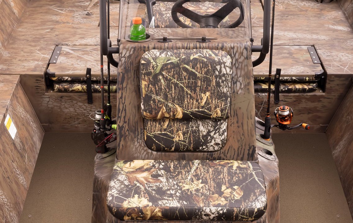 A place for everything... the center console design helps all anglers on board organize their gear, and also provides a grab rail, cupholder, and extra seat. |