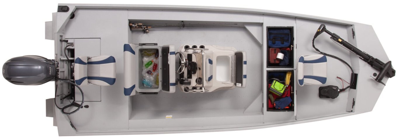 Add the optional lockable console door to your boat for added security for your valuables. Angler has room for 6 rods in the upright rod holders on the console. |