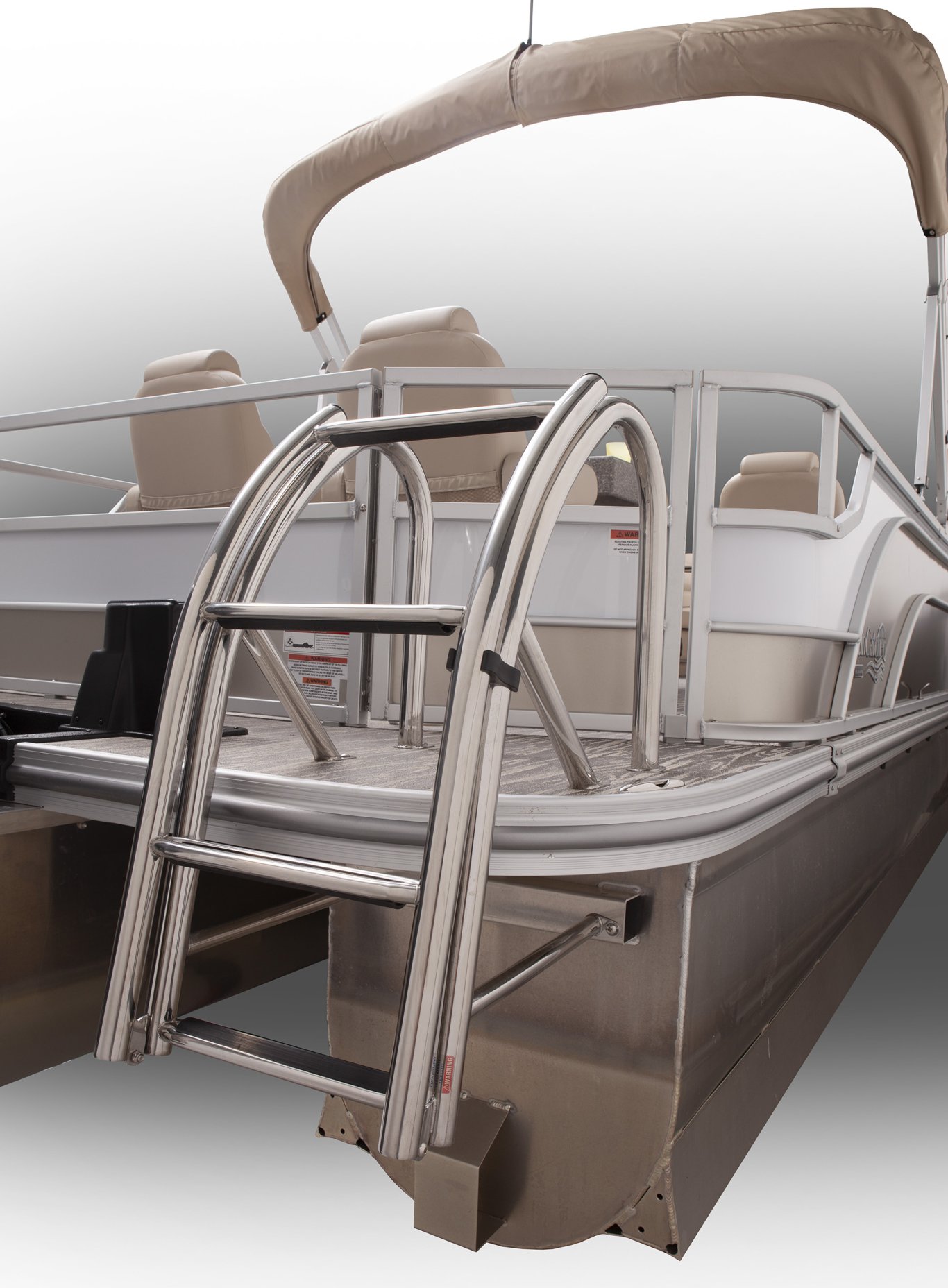 This optional stainless steel ladder has a more convenient curved shape to make boarding easier and more comfortable.