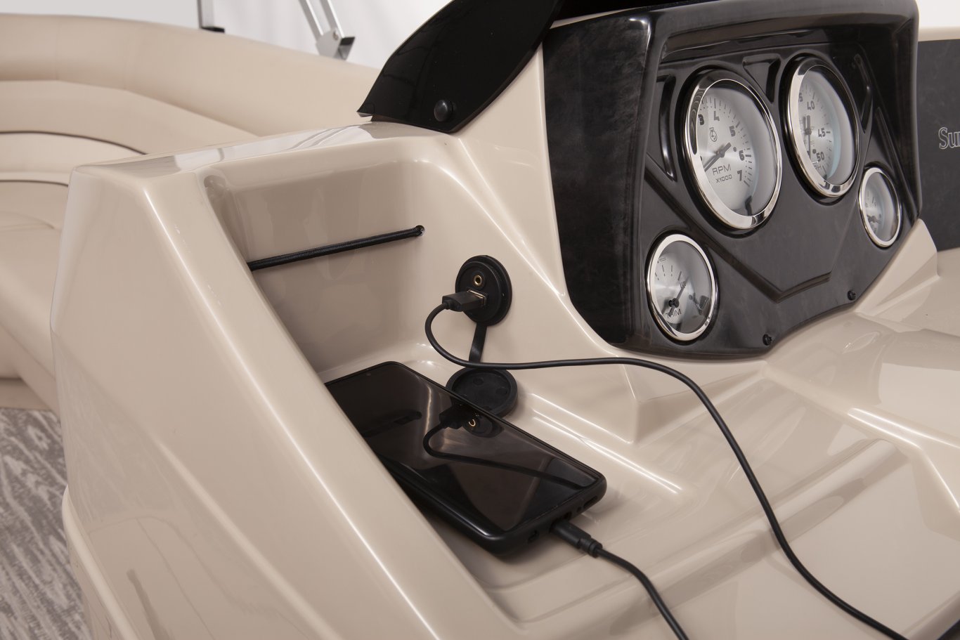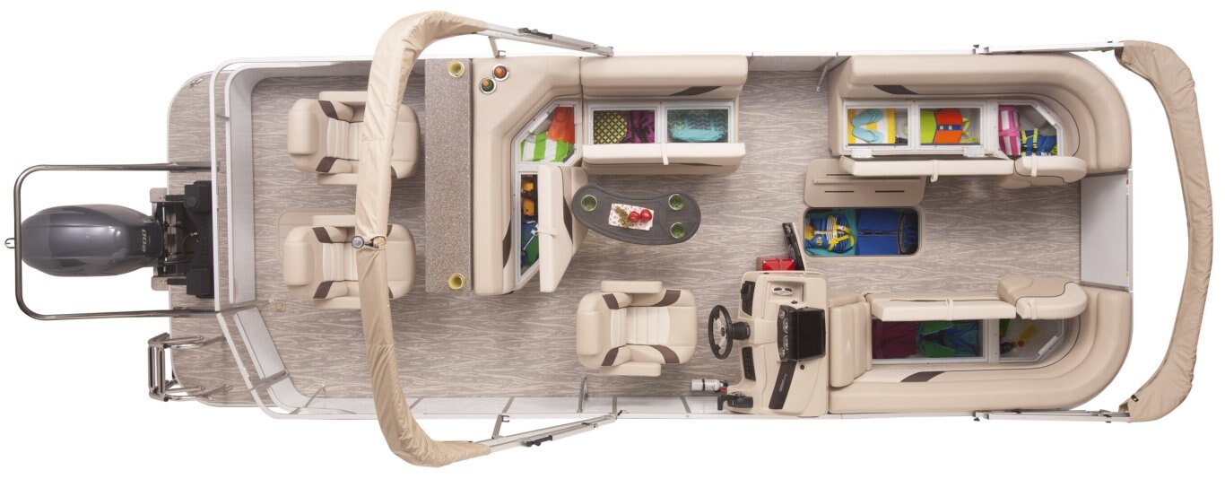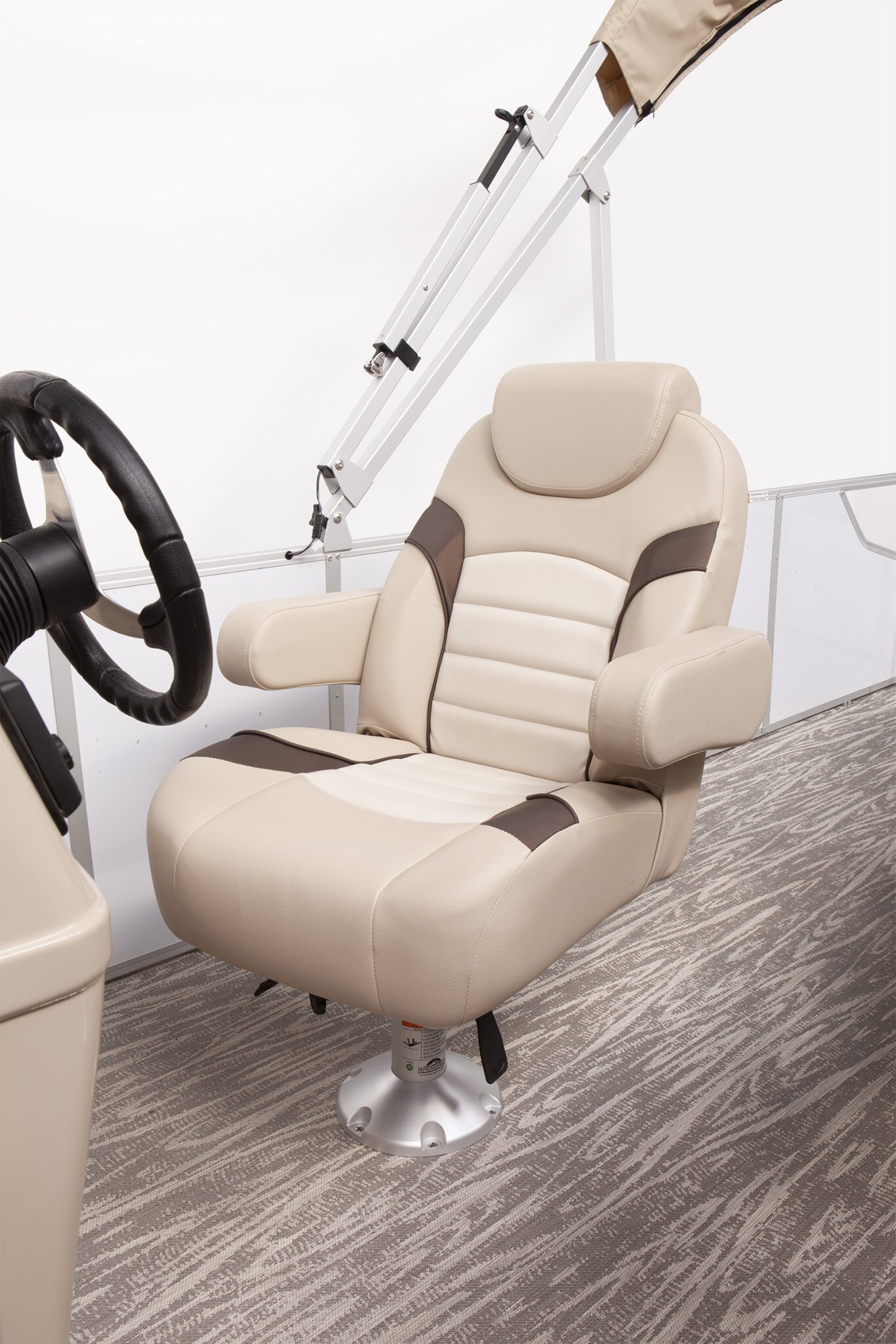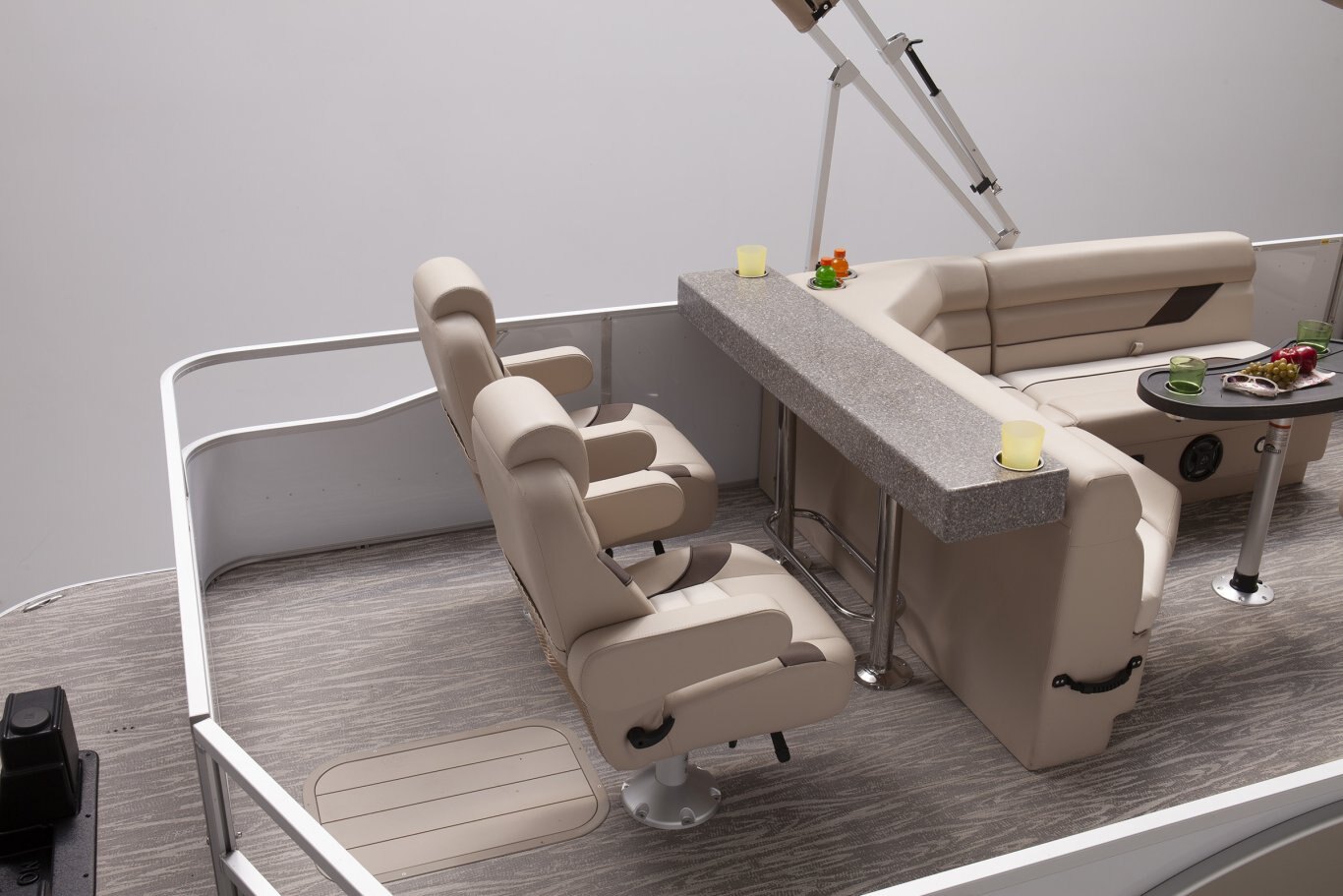 The “SE” means stern entertainment and this pontoon provides a matched pair of high back captain’s chairs which recline and swivel, along with an extended countertop to facilitate service for everyone aboard your evening cruise.