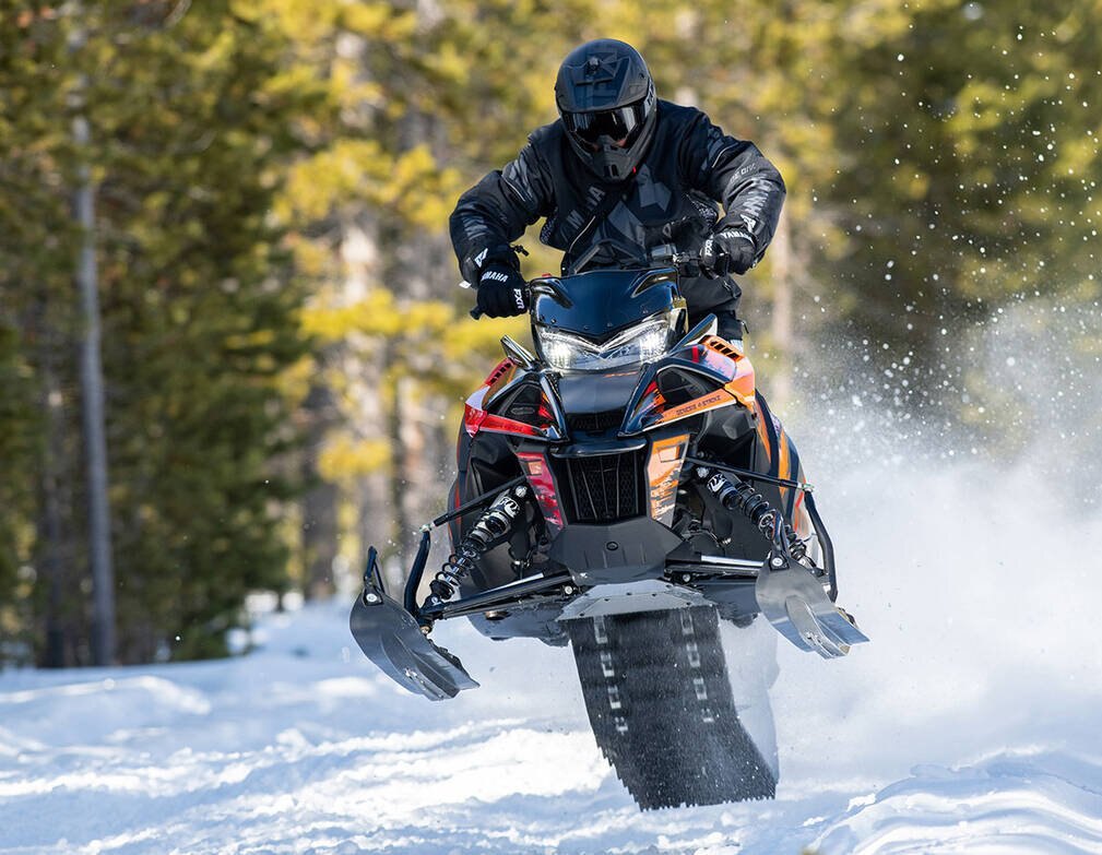 The 2025 Sidewinder X-TX SE is all about a quick shift from groomed trail to carving between the trees in the deep snow. Kitted out with VersAttack 146 rear suspension and 2.0-inch deep-lug Camso 'Challenger' track, the front end sports a narrower 40-inch ski stance supported by wide Yamaha Mountain Skis. The tunnel and steering system are based on the SR-M Mountain chassis complemented with a lightweight mountain seat, tapered foot boards and Stealth controls. Top-shelf Fox® Zero QS3 shocks are found up front to accommodate a wide range of terrain and riding styles. The iconic Genesis 998 Turbo adds all the power needed to blast through the powder.