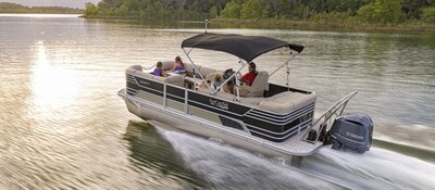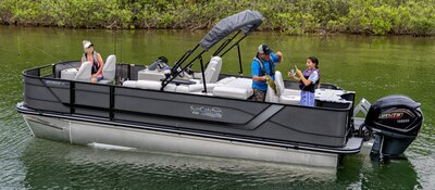 The SunCatcher Fusion 322 RC is one of those pontoons with total comfort from bow to stern. With bow and stern couches there is always plenty of room for your family and friends. The passenger captain’s chair swivels and reclines just like the captain’s chair. Open up the couches for more storage than you could possibly need. ...