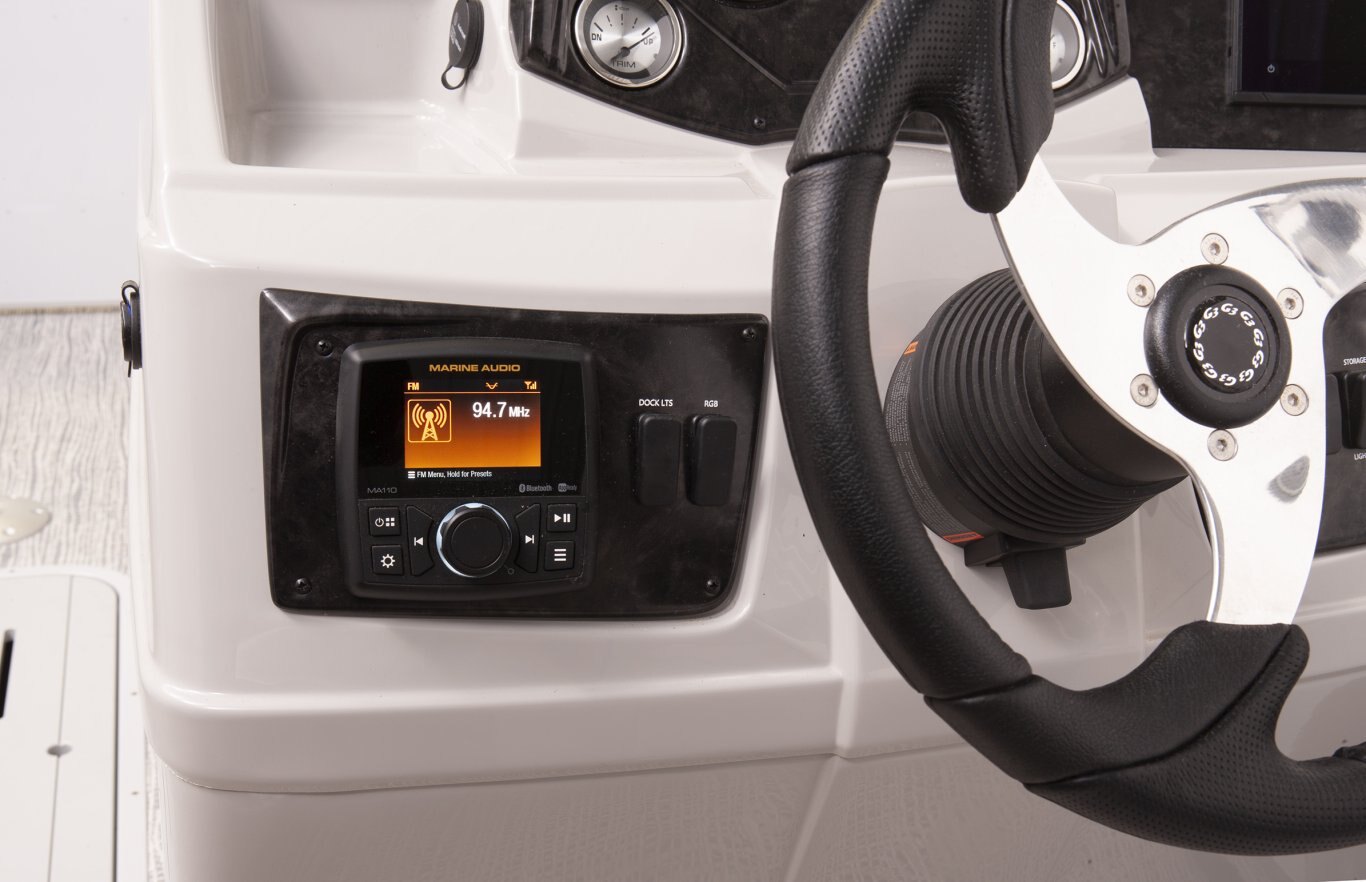 Optional upgrade features a Marine Audio MA110 head unit and 4 MSX65 speakers.