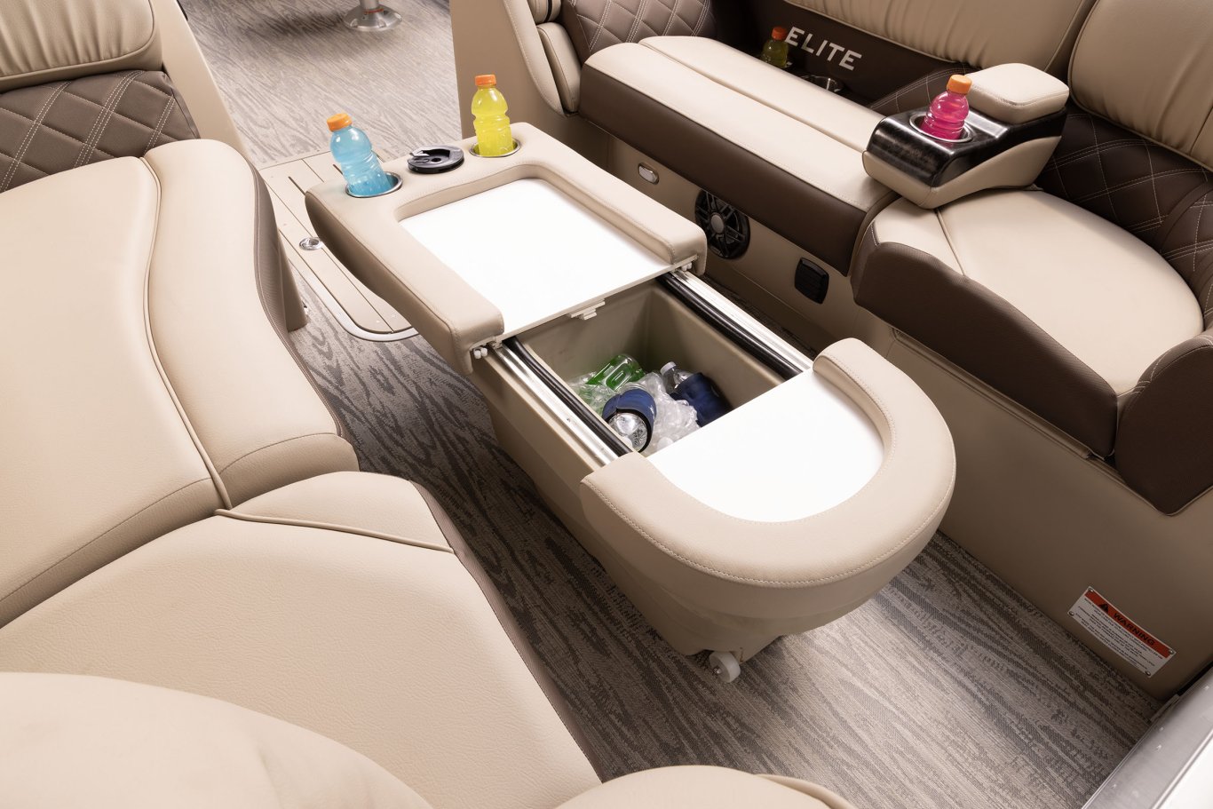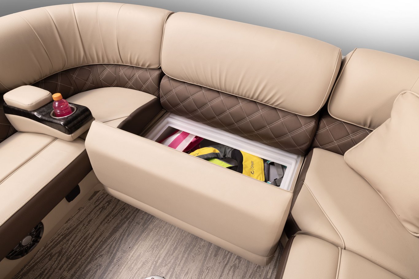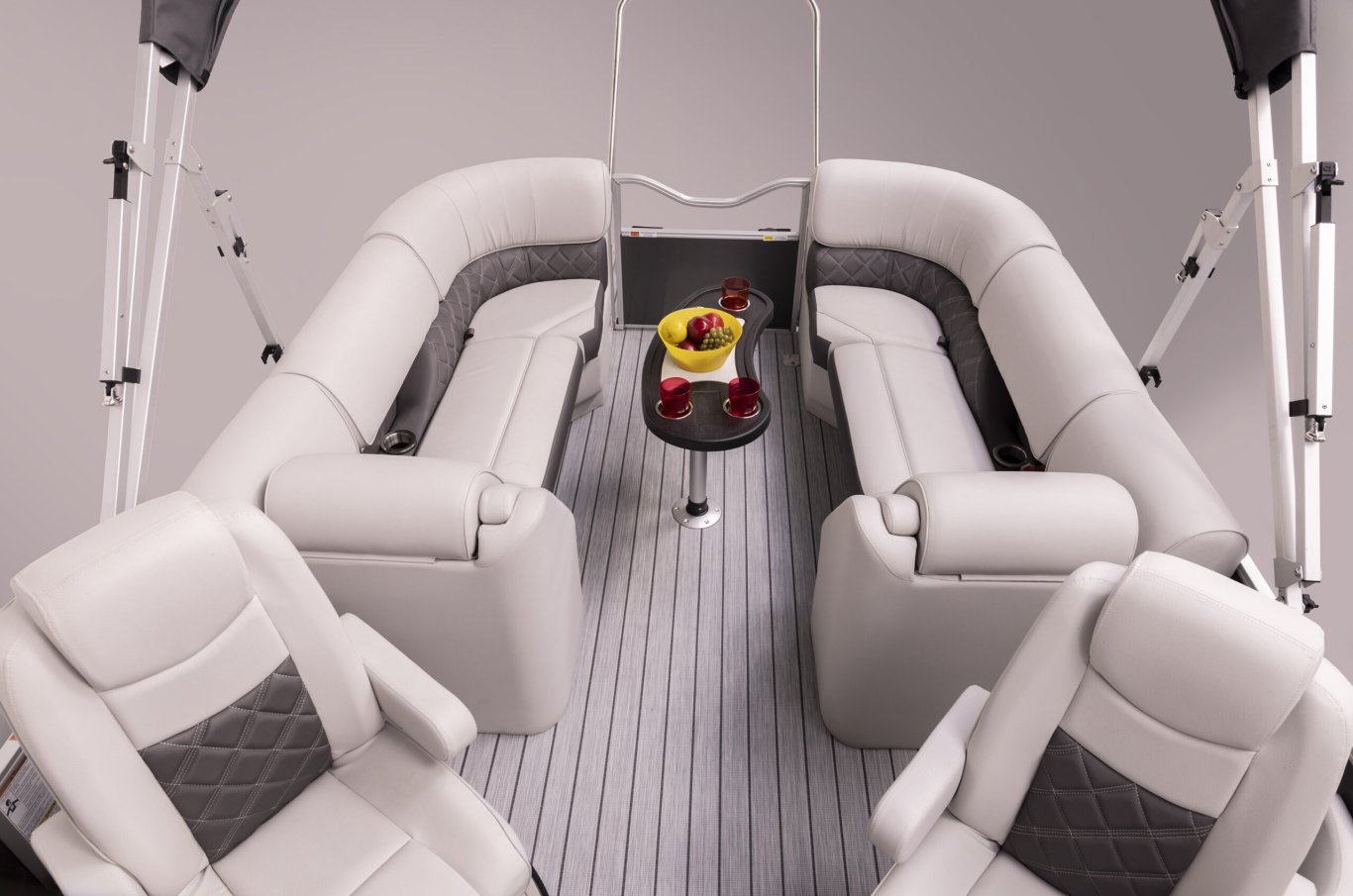 | The SunCatcher Elite 324 RC provides a family friendly layout. Stroll the center pass-through from bow to stern. Dual helm chairs and extra-long couches provide added seating and storage for up to twelve. Bow and stern gates are wide enough for wheel chair access. Relax and recharge…live the “G3 Life” soon. |