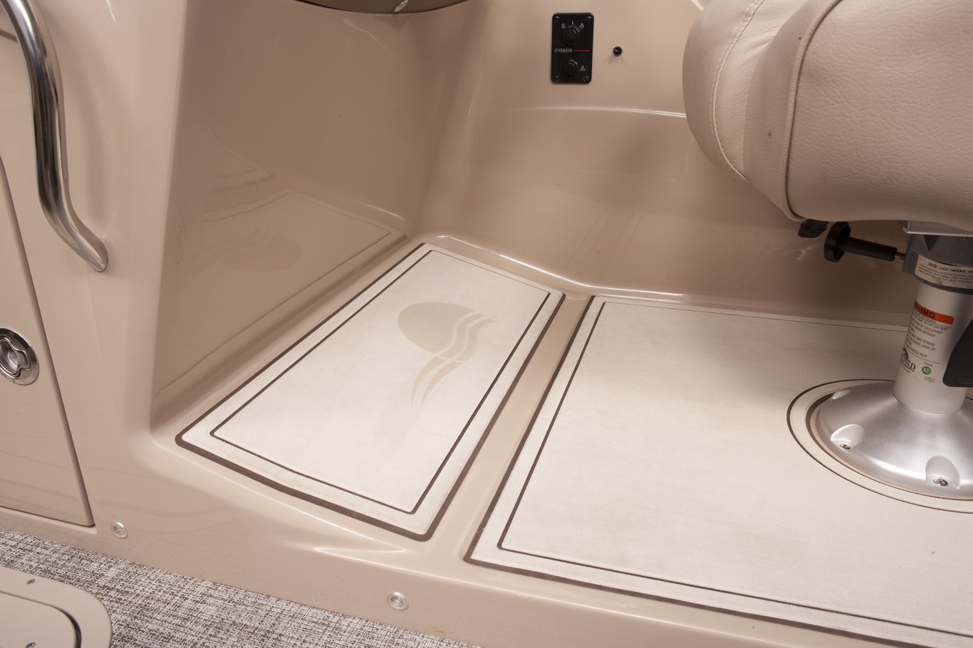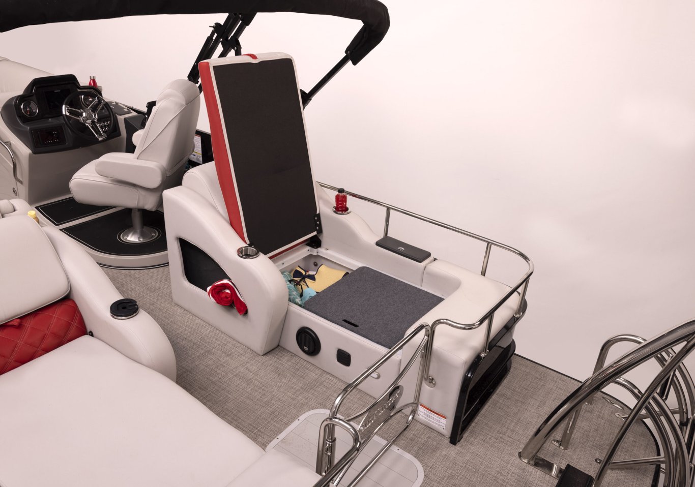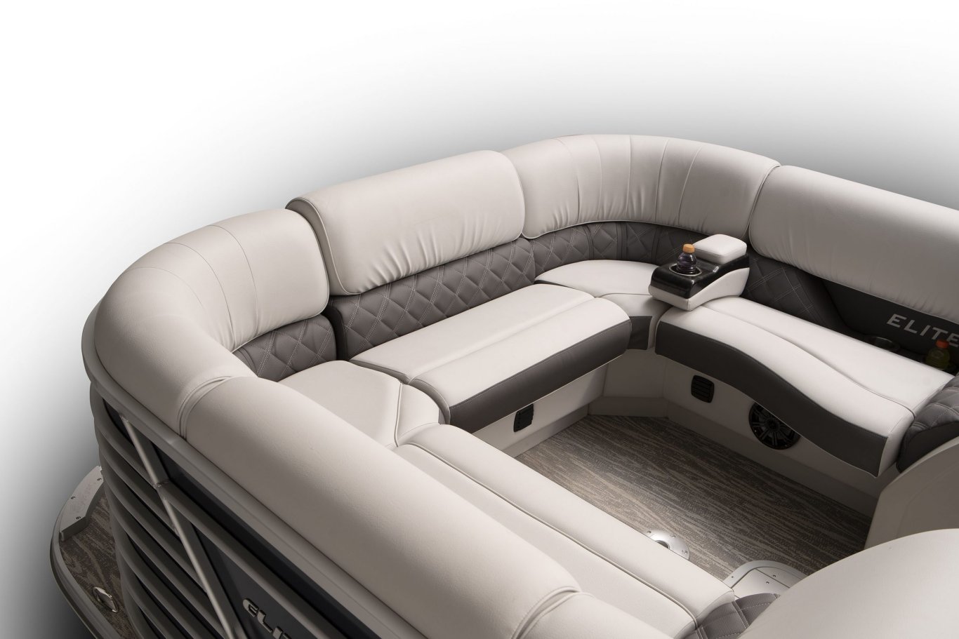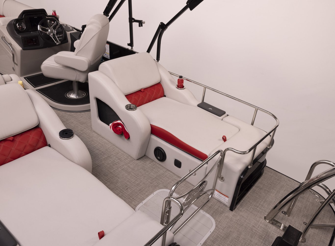 | Luxurious full length twin loungers are complimented by wrap around bow furniture and a contoured mid-ship lounger, all with storage compartments. Stainless accents, blue LED lighting and command center with built-in GPS, places the SunCatcher Elite 324 SS at the top of every boating enthusiast’s wish list. Shown in Sport Model Package |