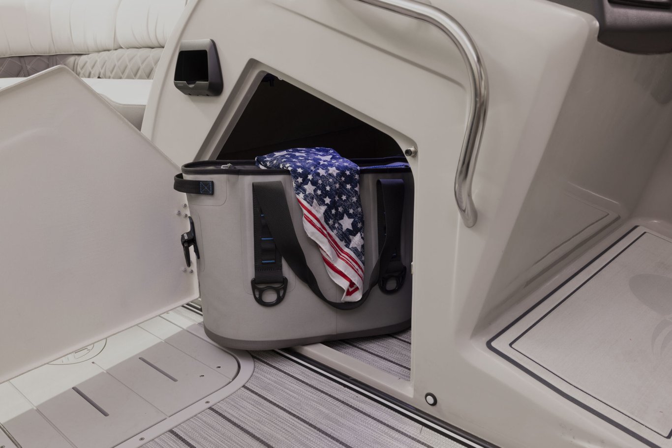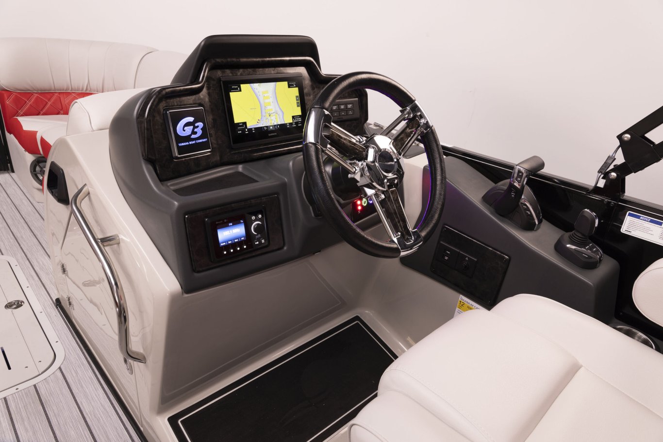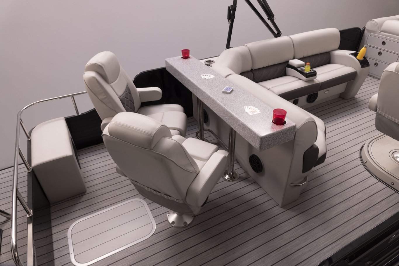 | The SunCatcher Elite 326 SE has all of the upscale amenities you expect; impressive contoured furniture, superior Jensen® sound system, woven vinyl decking material that is both elegant and easy maintenance, and industry leading console design and instrumentation. Open up the dependable Yamaha motor to feel the cooling wind, or find a favorite cove for a quiet evening. |
