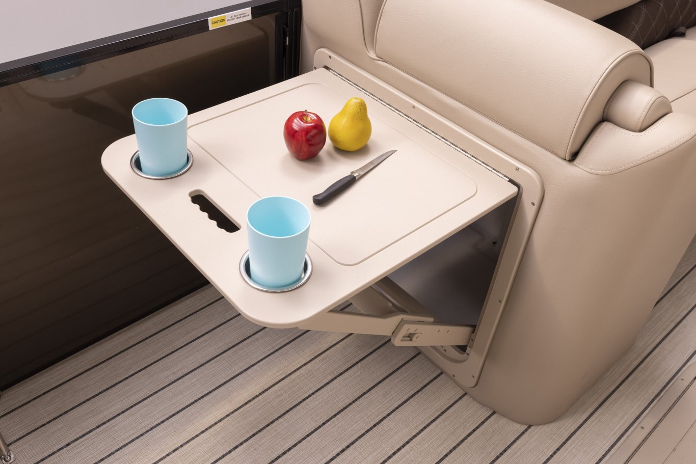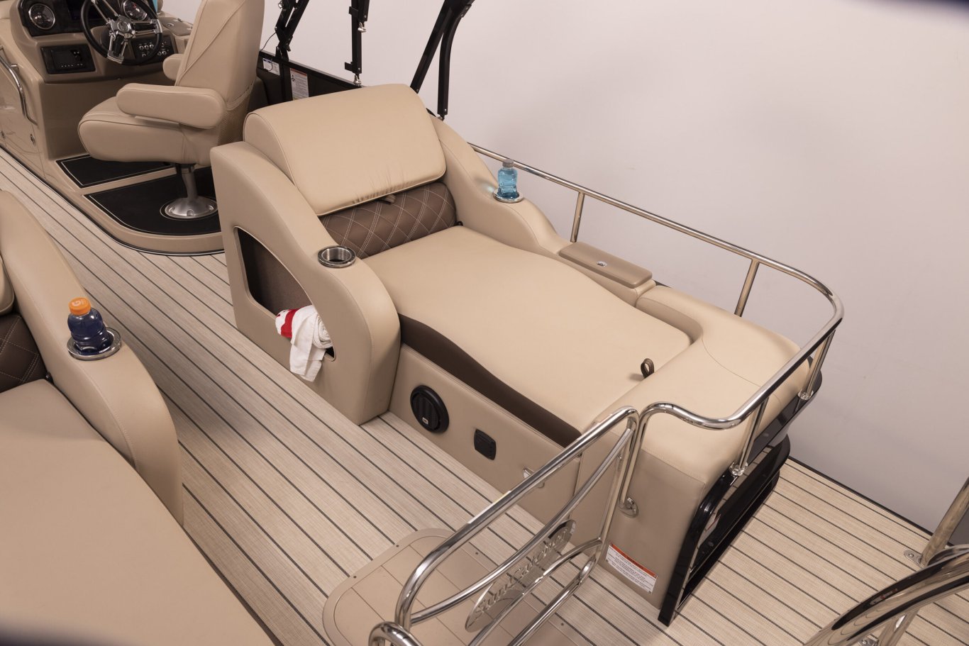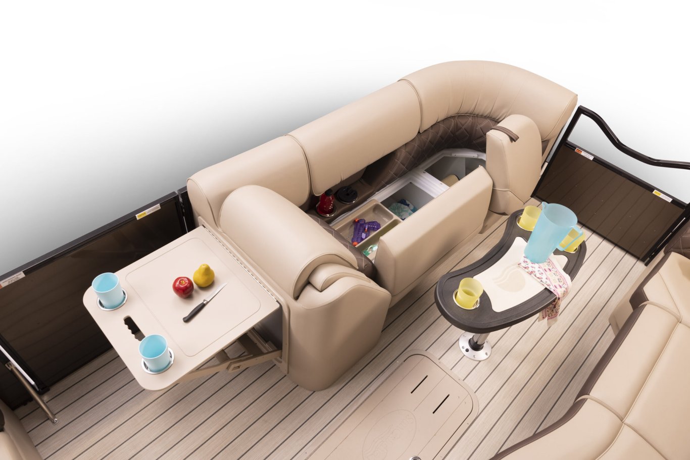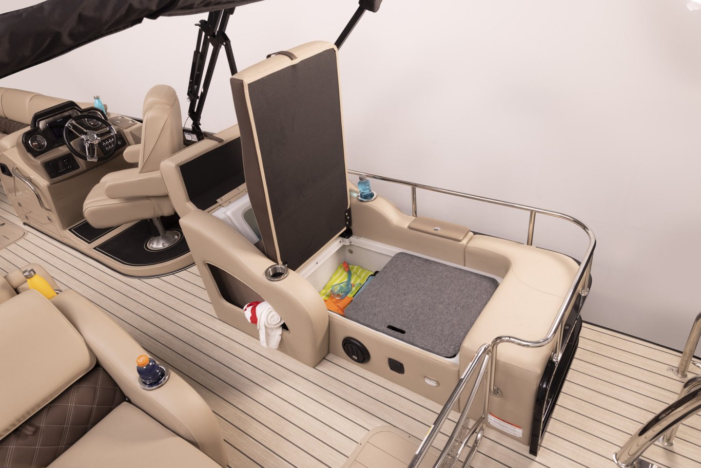 | The Elite 326 SS is a lavish example of state-of-the-art pontoon craftsmanship. On board, elegant furniture combines with premium amenities to create an atmosphere of total relaxation while on the water. The Diamond Elite performance package is available on all Elite Series pontoons. The Diamond Elite package also offers a max HP of 300 with includes the Yamaha DES controls. |